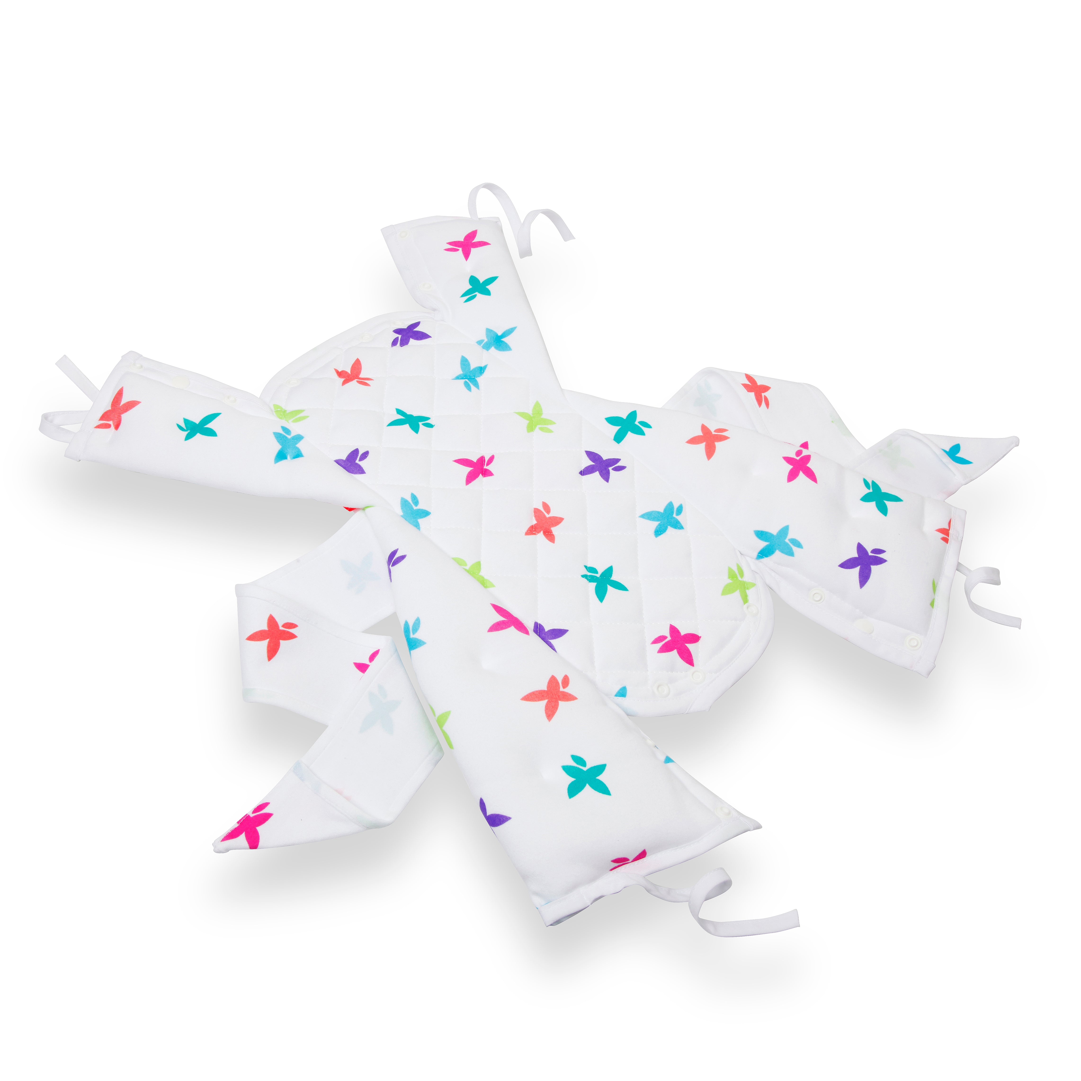 Scopul nostru este să oferim bebelușului limite sigure, similare celor din uter, și o suprafață moale pe care să o poată atinge și de care să se sprijine. Acest lucru îi asigură siguranță și confort, contribuind activ la dezvoltarea fizică normală.