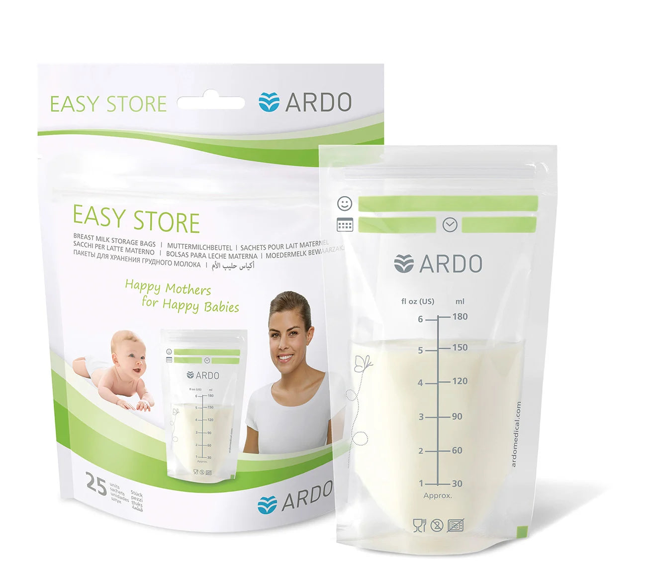 Toate recipientele din plastic Ardo sunt fabricate exclusiv din material fără Bisfenol-A (BPA). Acestea sunt interschimbabile între circuitele de colectare și pompele de sân.